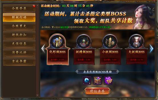 【活动内容】活动期间,累计击杀指定类型的BOSS即可领取大奖。